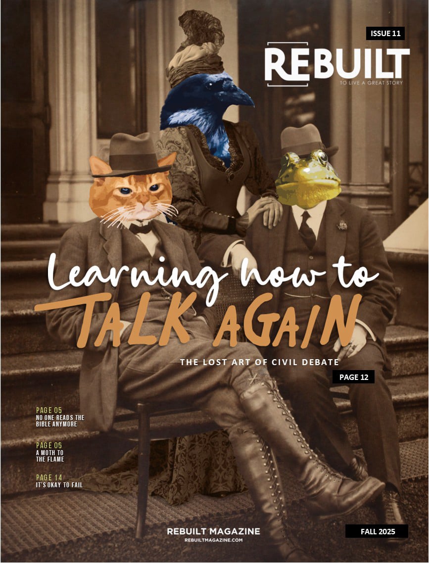 Rebuilt Magazine is written, laid out, and printed by members of college campuses. We’re Christians who love Jesus and want to write about God, life, and college. We hope the magazine is helpful, challenging, and provocative, while encouraging you to pursue a strong relationship with Jesus.